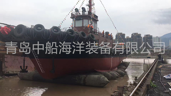 2017年4月17日,中船船用氣囊助浙江船廠拖輪成功下水,氣囊規(guī)格φ1.5m×12m長度,數(shù)量10條。